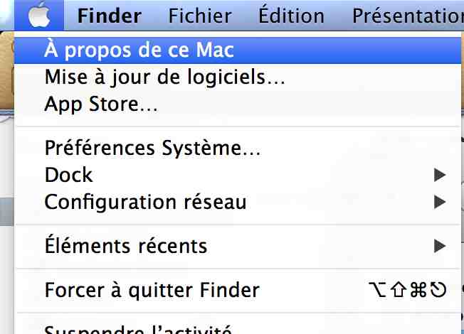 Si vous cliquez sur le menu pomme, le premier menu qui apparaît est “A propos de ce Mac”, ne cliquez pas dessus tout de suite :