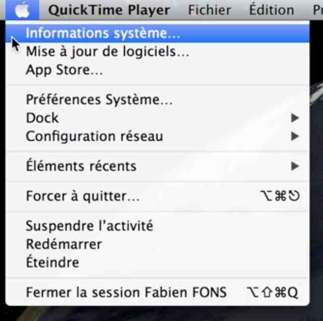 Ne bougez pas, appuyez simplement sur la touche option, le menu va ainsi changer, cliquez donc simplement sur “informations système… :