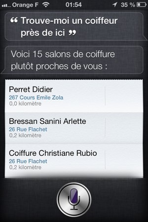 Recherche d'un coiffeur avec Siri