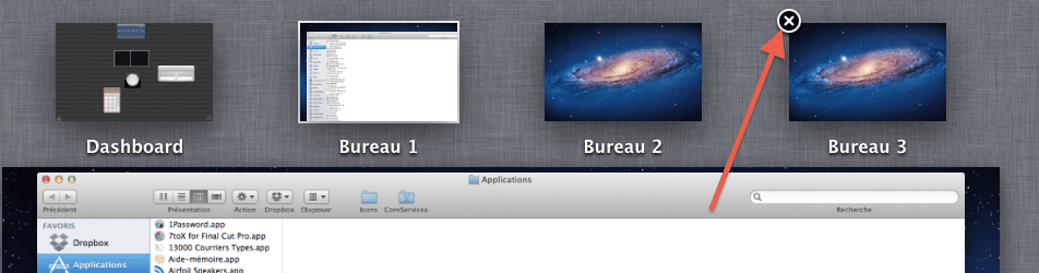 Si vous utiliser le mode Multi Bureau de Mac OS X Lion (Mission Control), pour supprimer un bureau vide, c’est très simple :